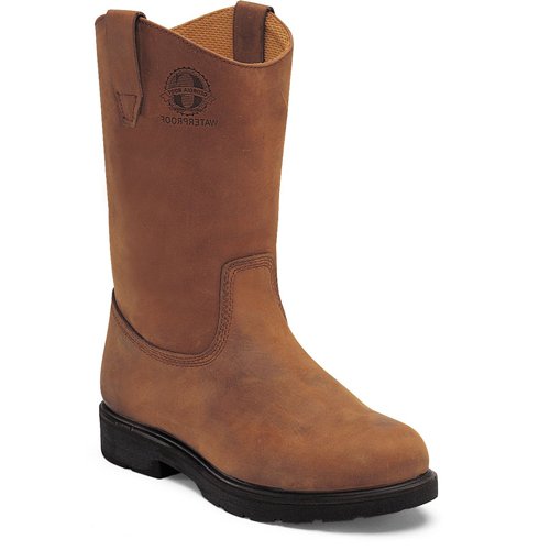 Georgia Wellington Dark Baja Tan Heritage Boots. Kick the competition out the door! Want dry feet? This is your best bet. The Georgia waterproof system and waterproof full-grain leather uppers ensure that normal wet conditions won't sour your workday. Fully lined with breathable moisture-wicking material for all-day dryness; Waterproof full-grain leather upper is durable and molds to your feet for comfort; Removable Comfort Core Airflow orthotic insert for comfort; Direct attached oil-resistant polyurethane "suspension" outsole; Steel shank for stability; Approx. 30 ozs. each.; State Size. Order yours today! Men's 11" Georgia Wellington Dark Baja Tan Heritage